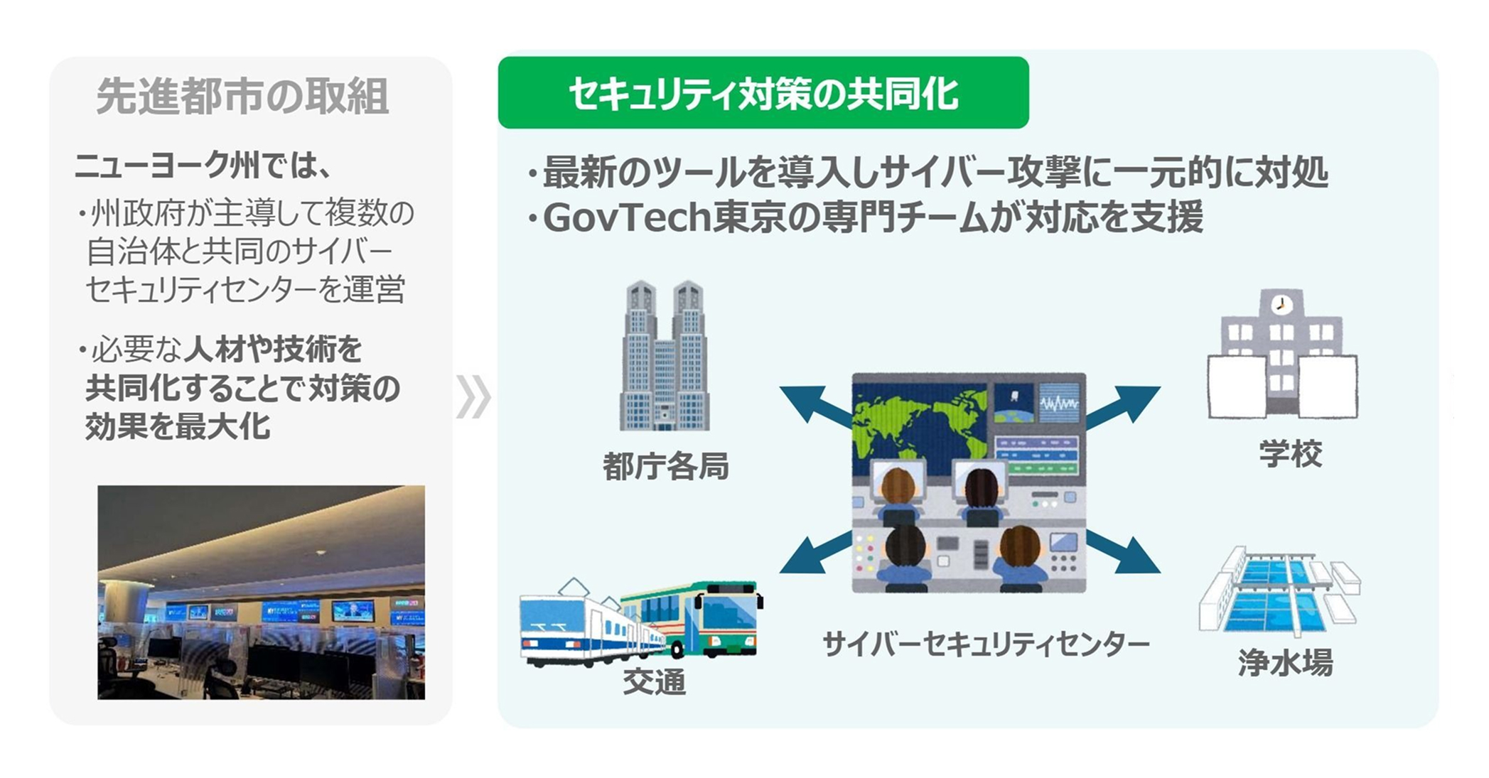 こういった課題を踏まえて、サイバーセキュリティセンターにおいて技術と人を共同化して、オール東京として一元的なセキュリティ対策を推進していきます。