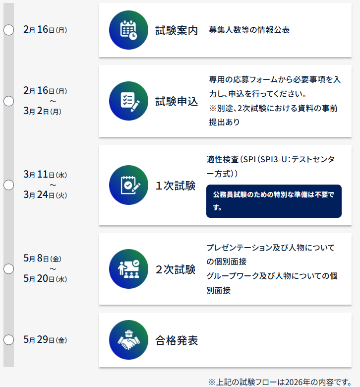 ● 第1次試験は適性検査(SPI3)のみで、特別な公務員試験対策が不要